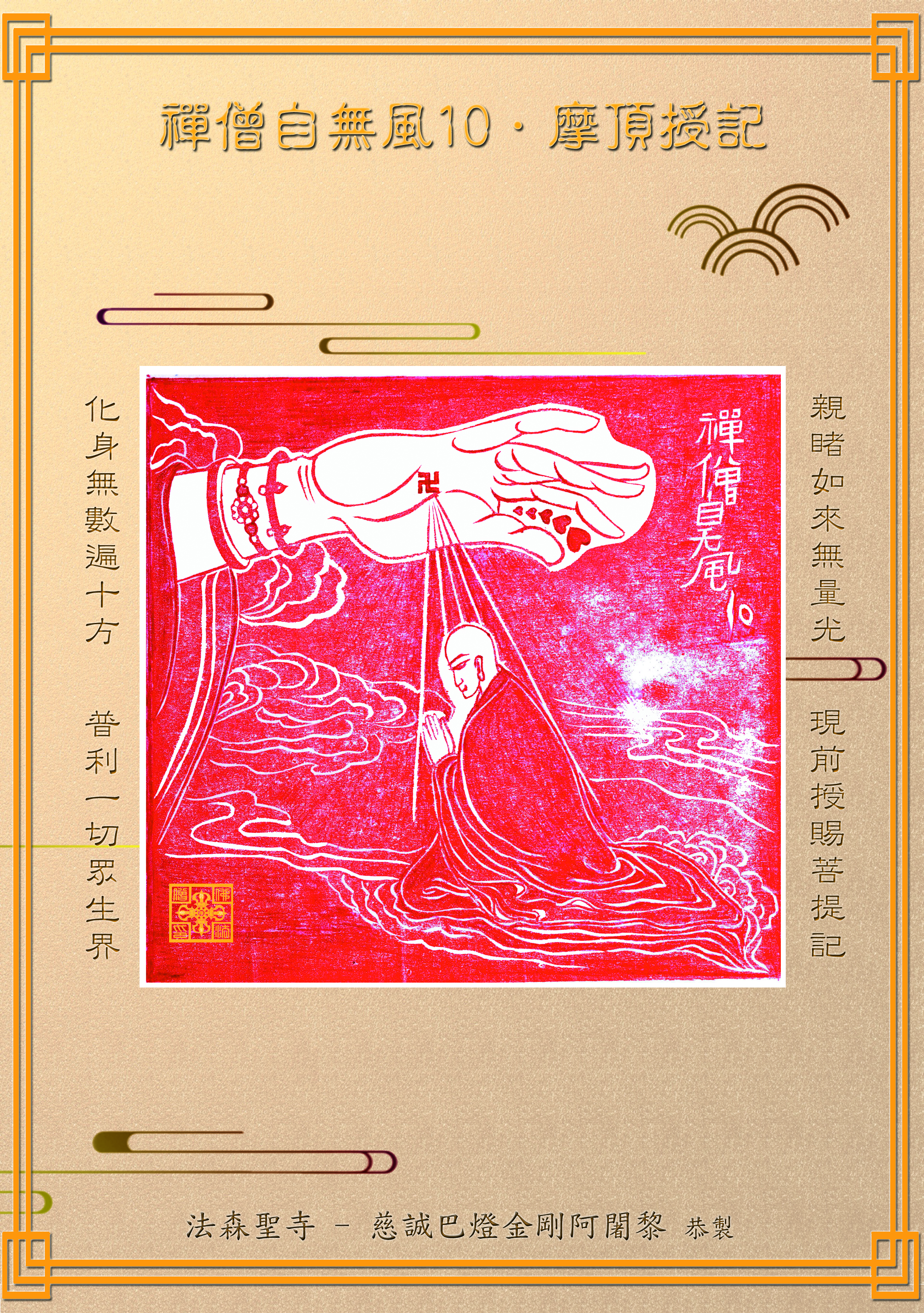 Yan Thomas 4 幾年 以前 - 已編輯 ཨོཾ 嬋師姐 ཨོཾ 頂禮至尊上師妙吉祥! 《和禪僧自無風10.摩頂授記》 淨剎禪僧兩足尊 八風不動攝一切 如來授記人天師 五佛智火導群生 廣宣聖教度有情 金剛三字賜加被 行住坐臥長憶念 三密相應成師德 回覆 回覆以... 取消
