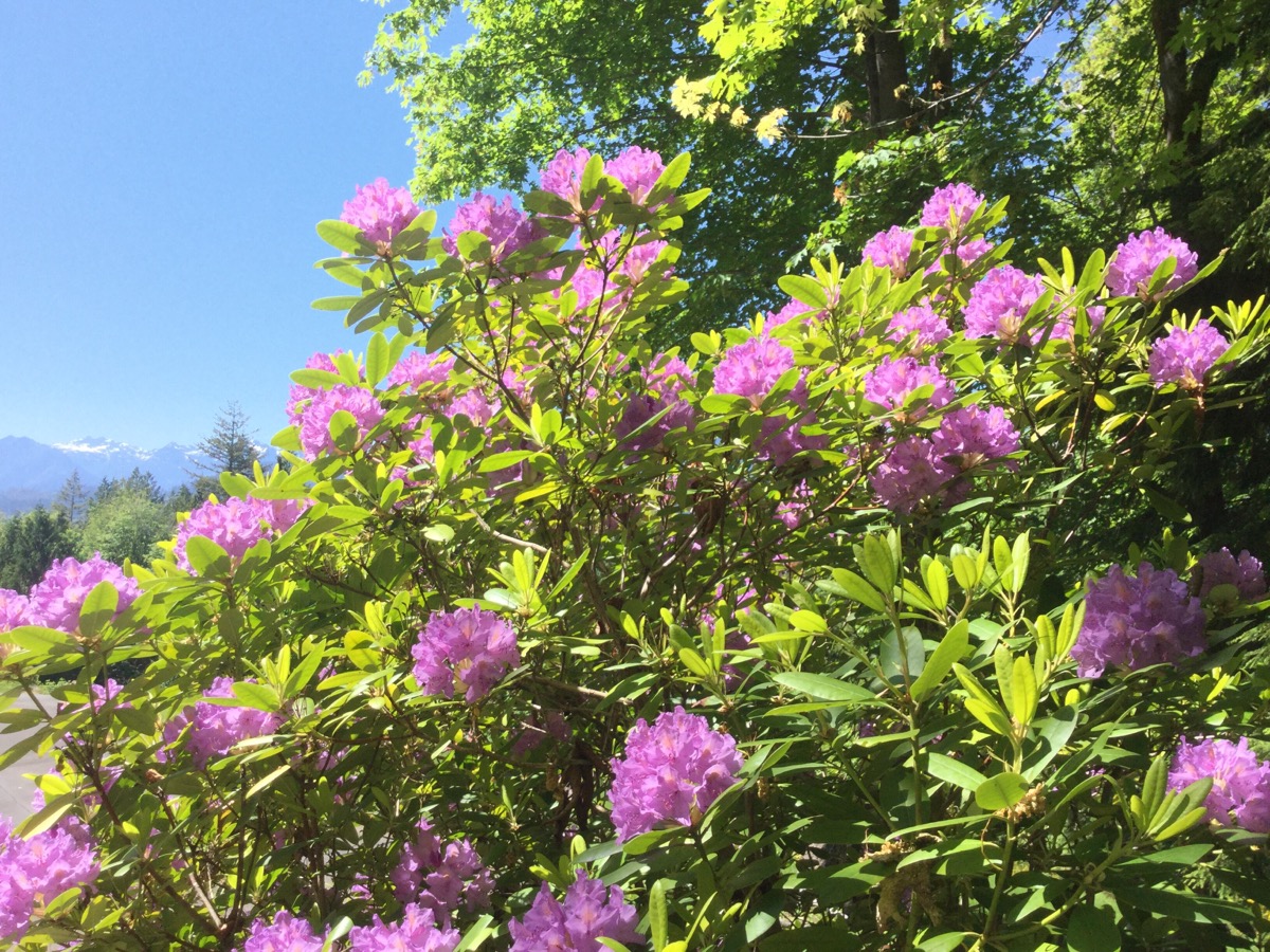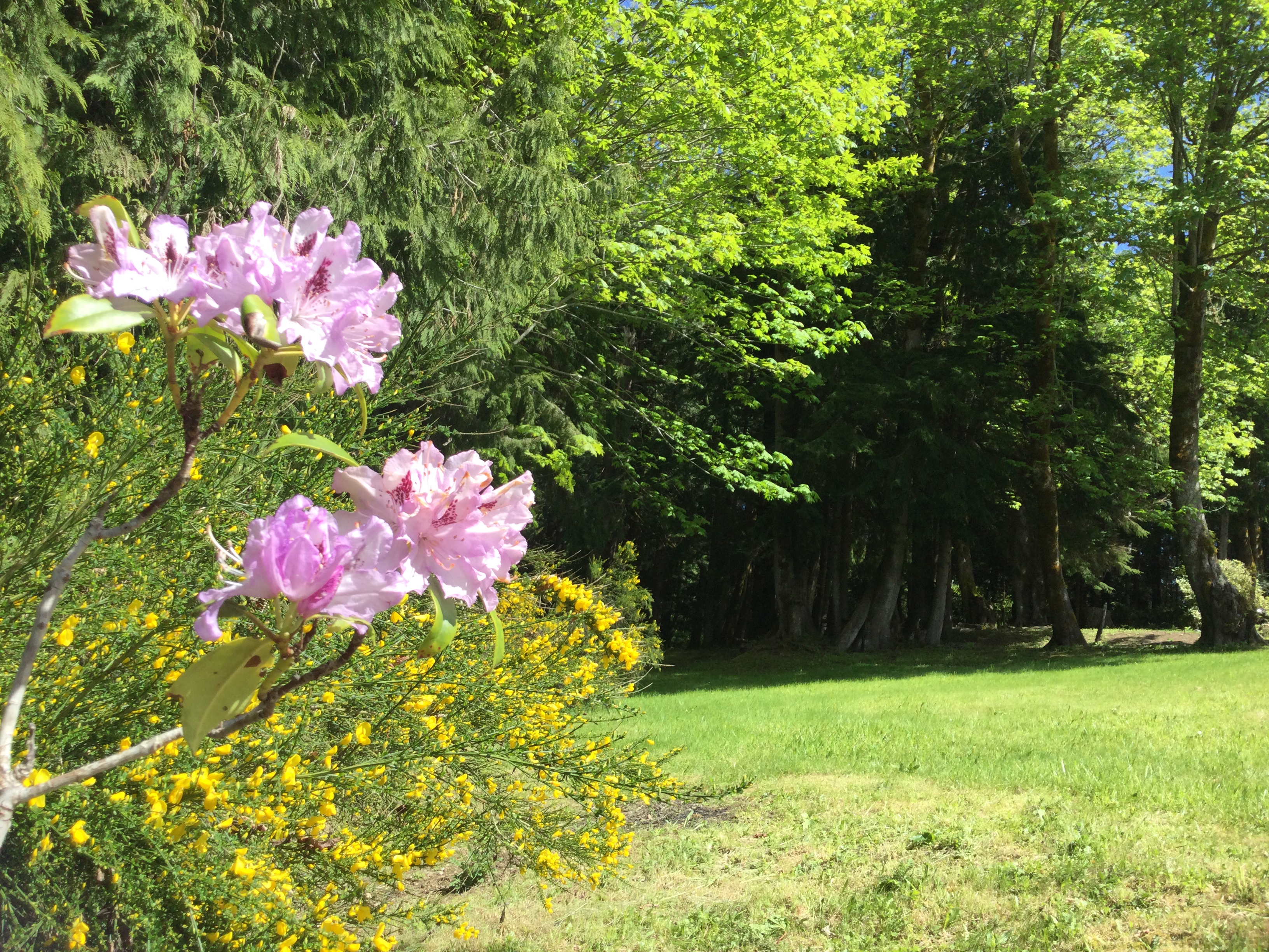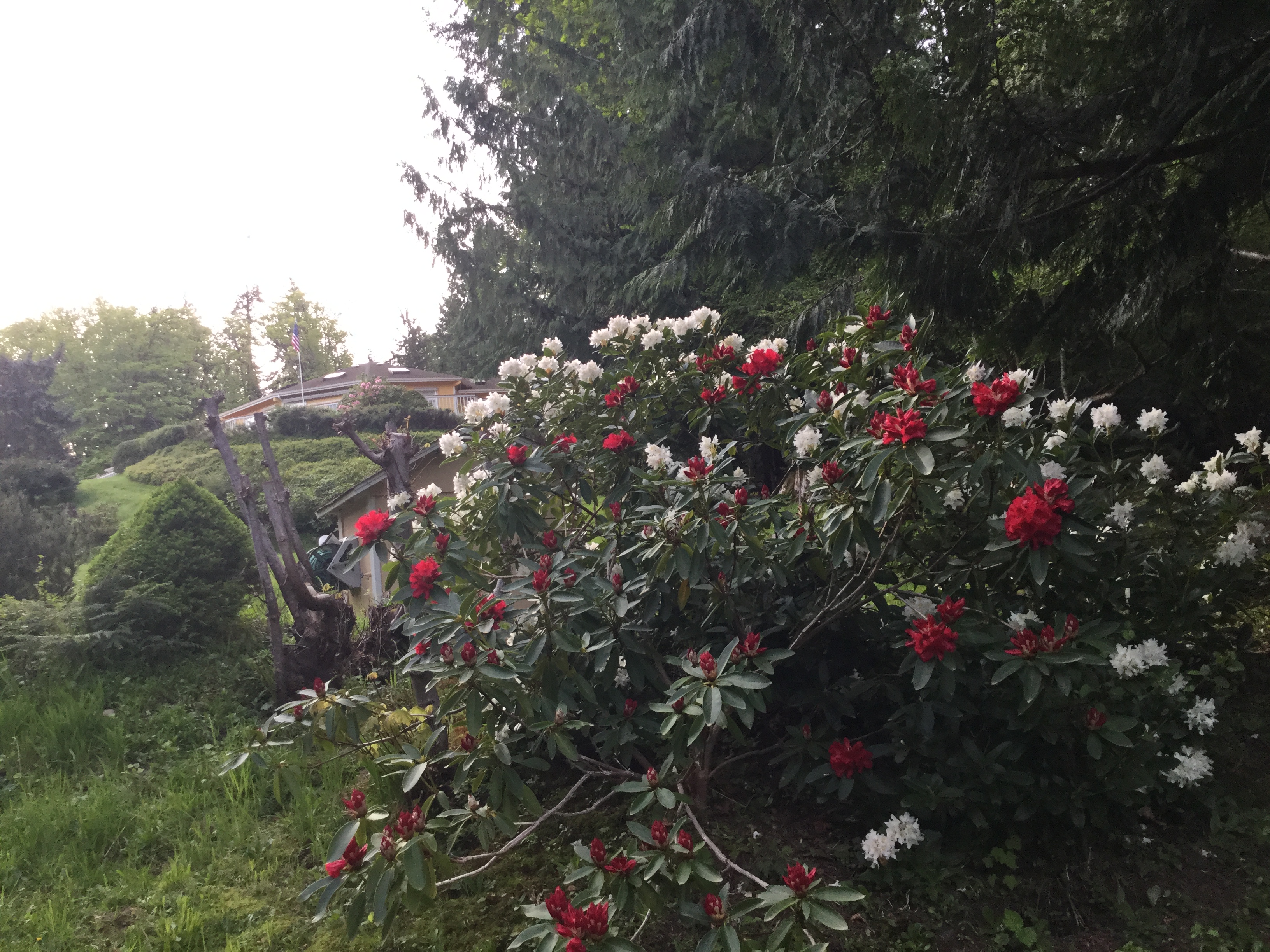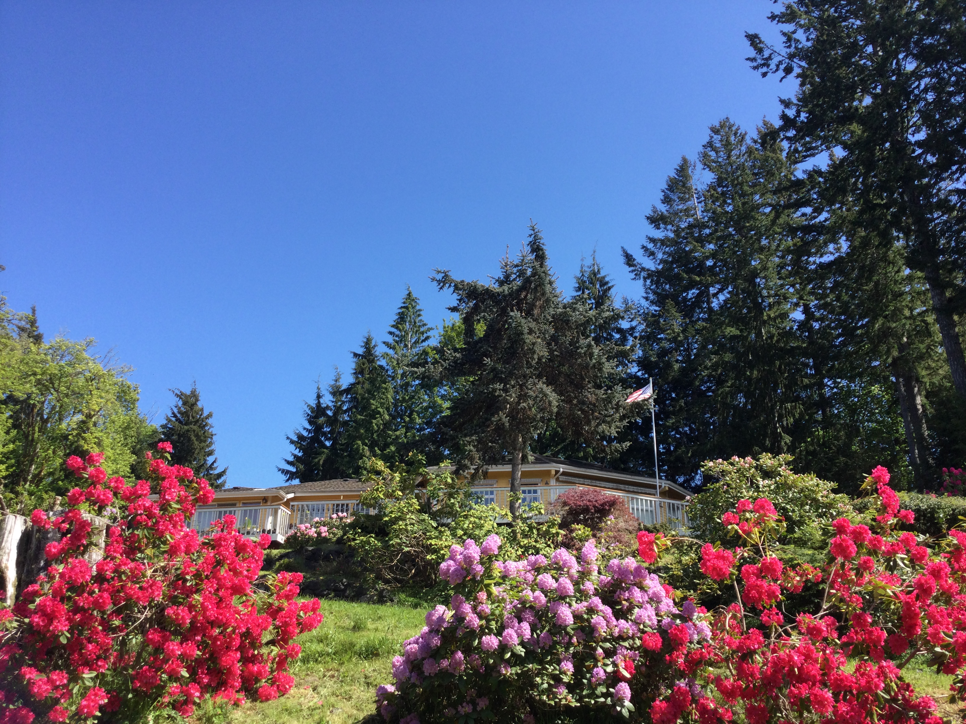 道場五月處處色彩繽紛的花卉,夏天遍地白色洋甘菊夾雜些紫色夏枯草,十月楓紅落滿地,冬日偶有瑞雪全覆蓋,四季有不同風貌景色。