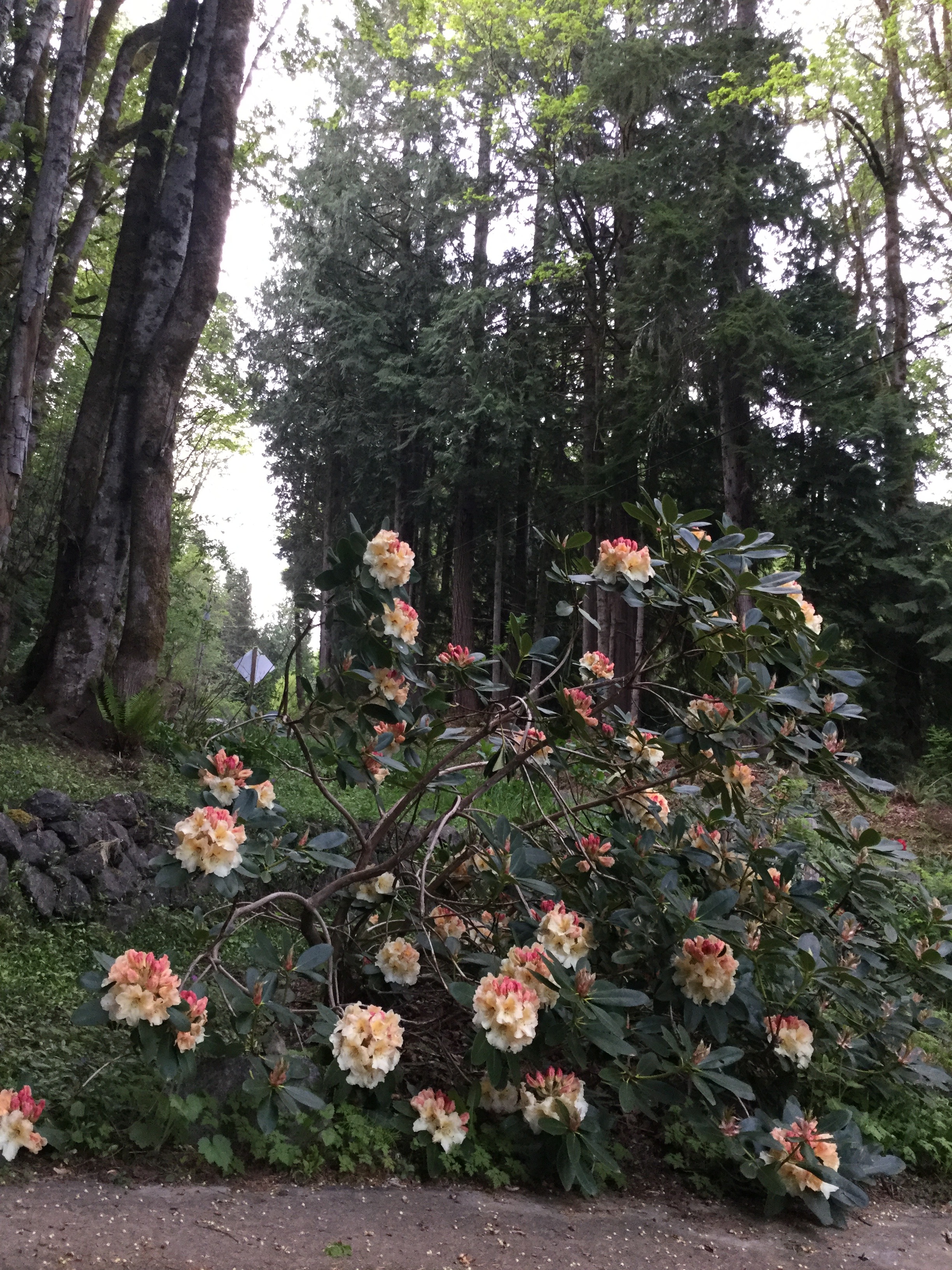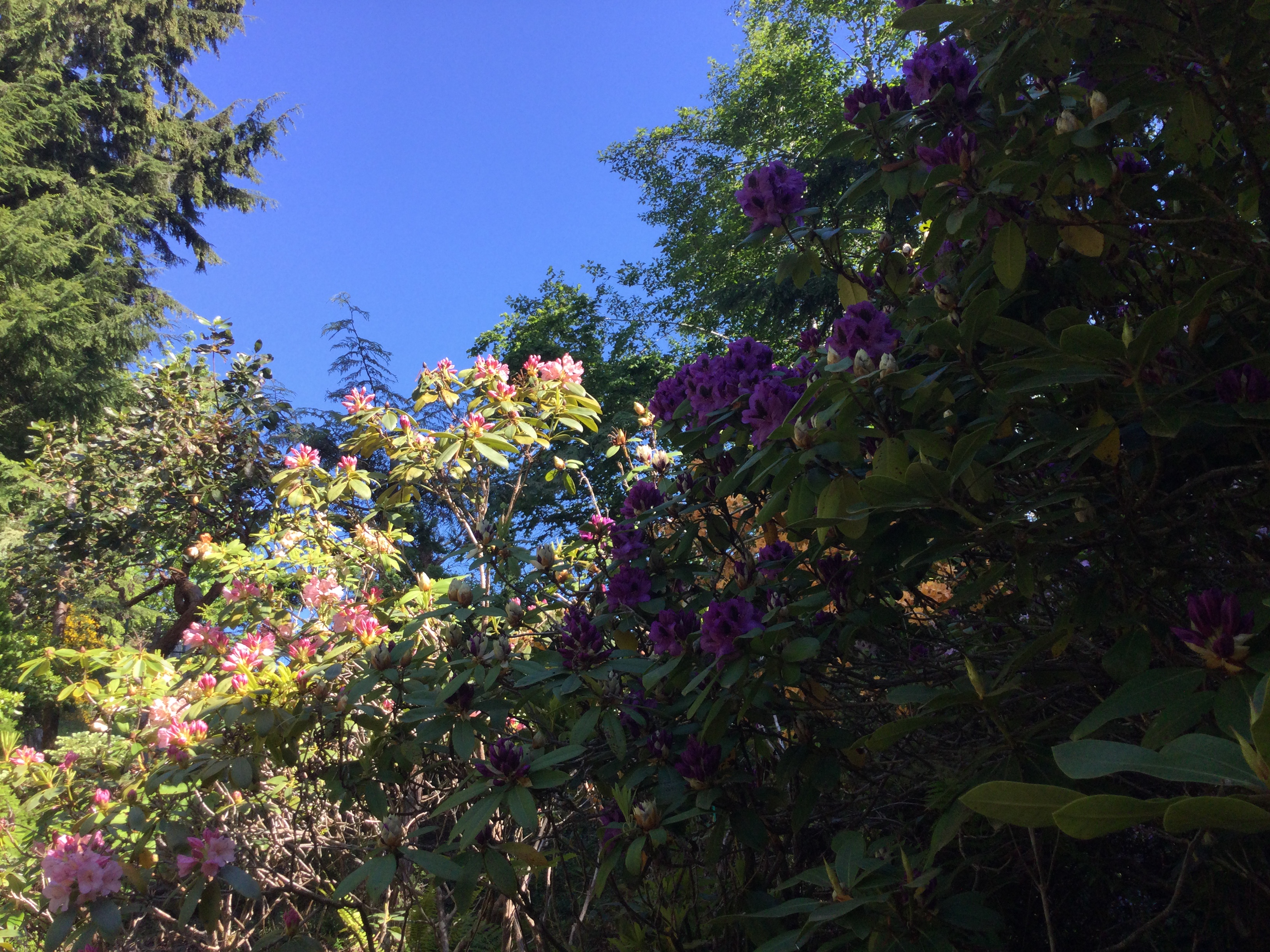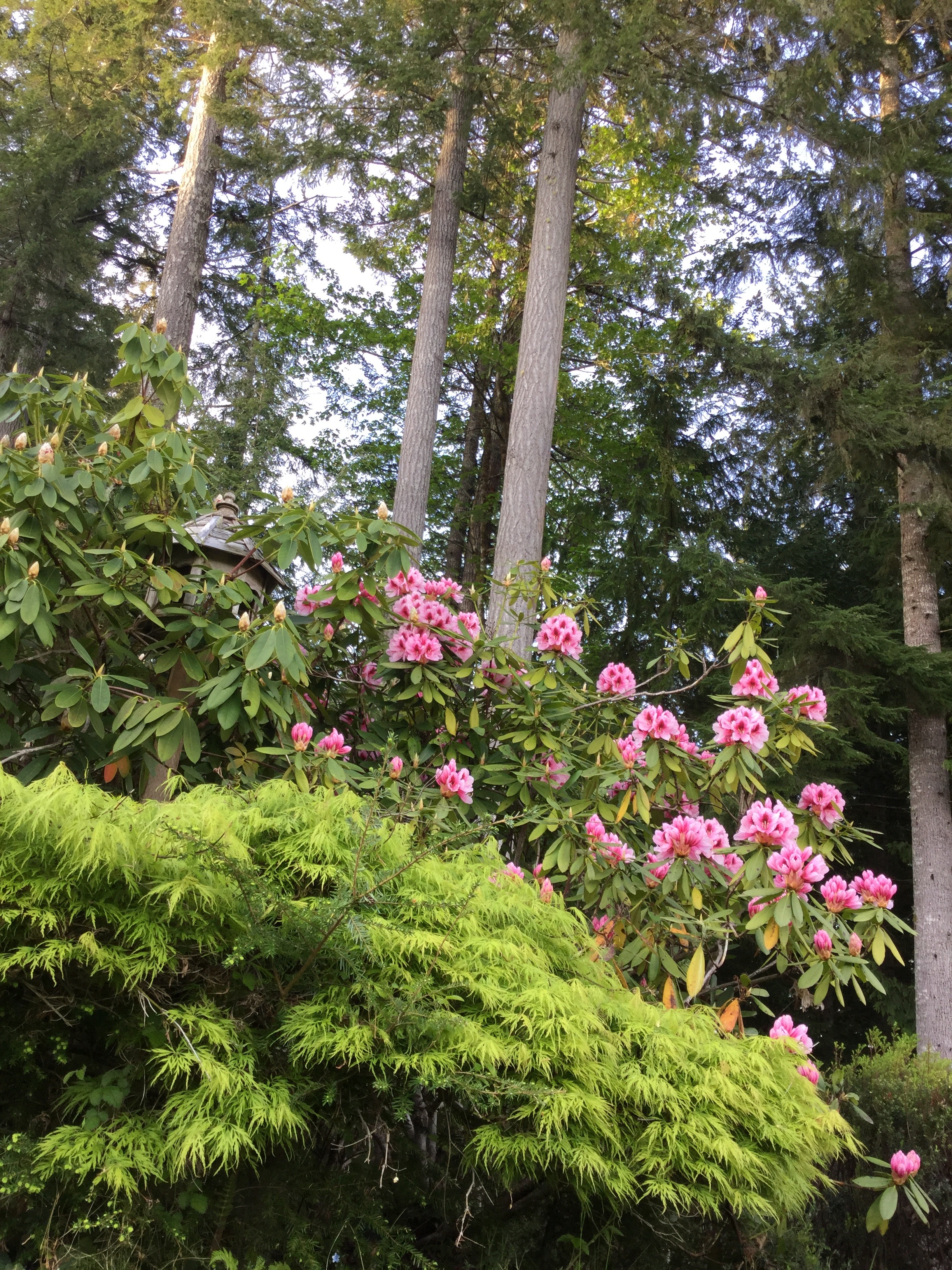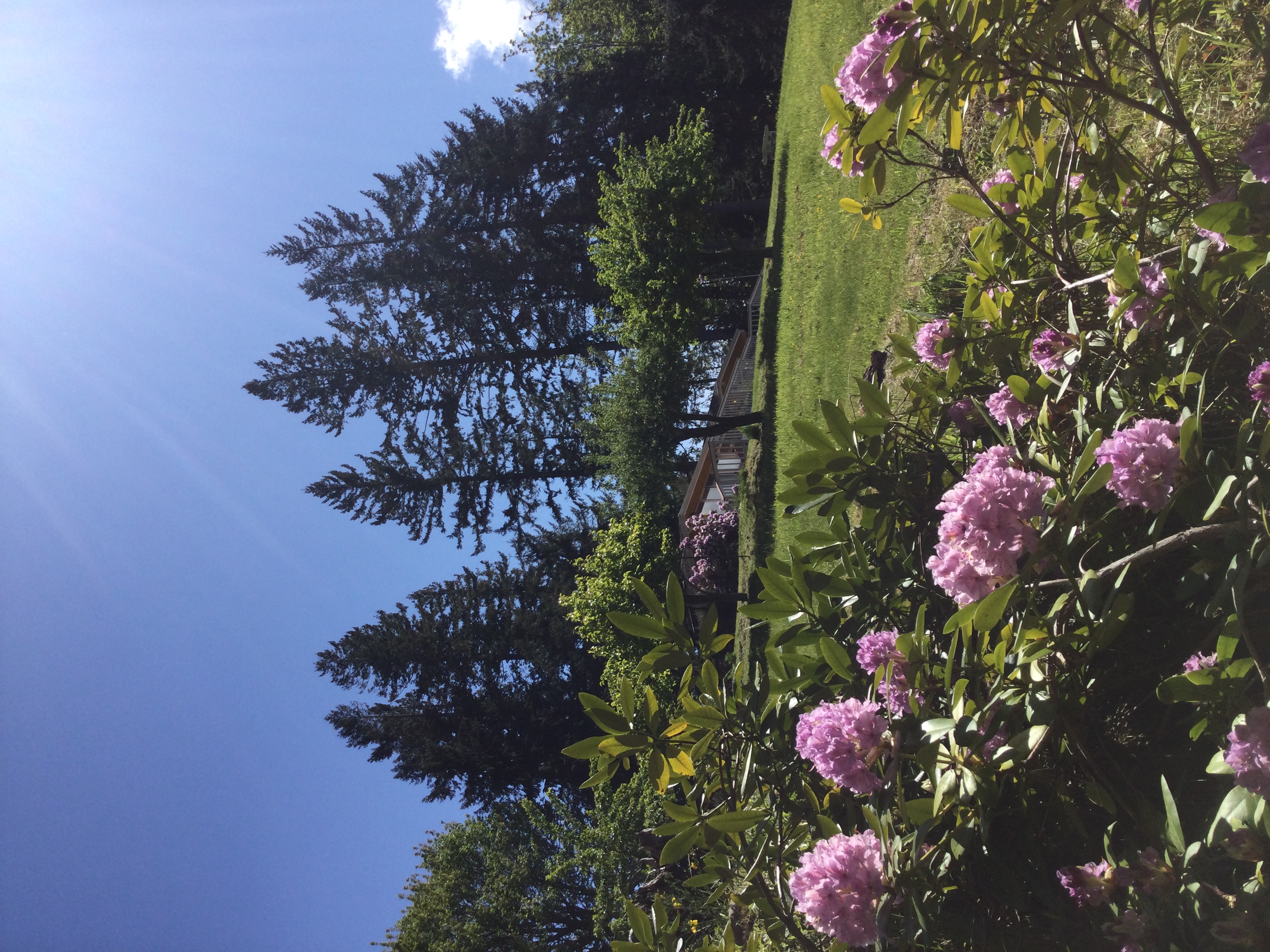道場五月處處色彩繽紛的花卉,夏天遍地白色洋甘菊夾雜些紫色夏枯草,十月楓紅落滿地,冬日偶有瑞雪全覆蓋,四季有不同風貌景色。