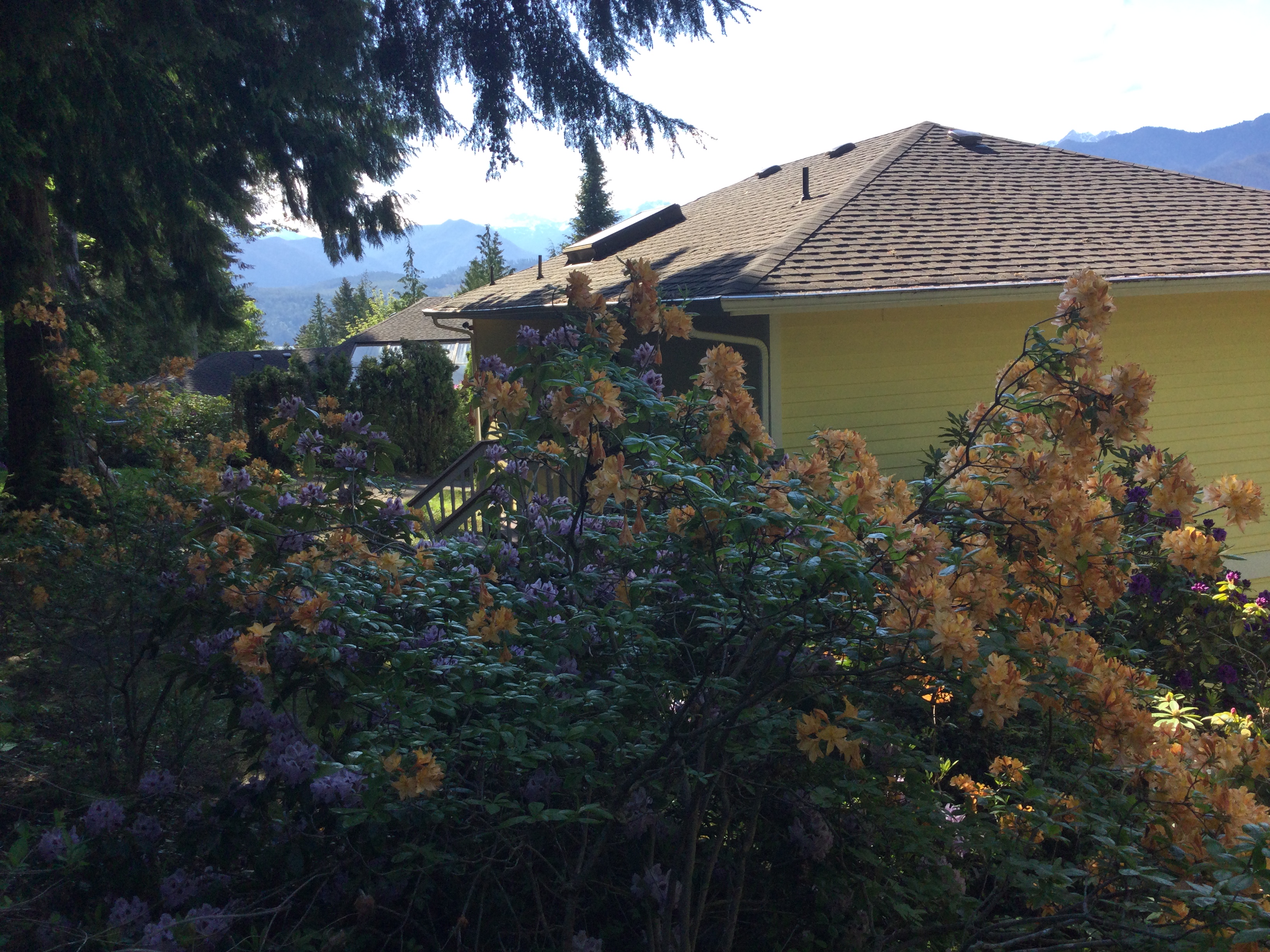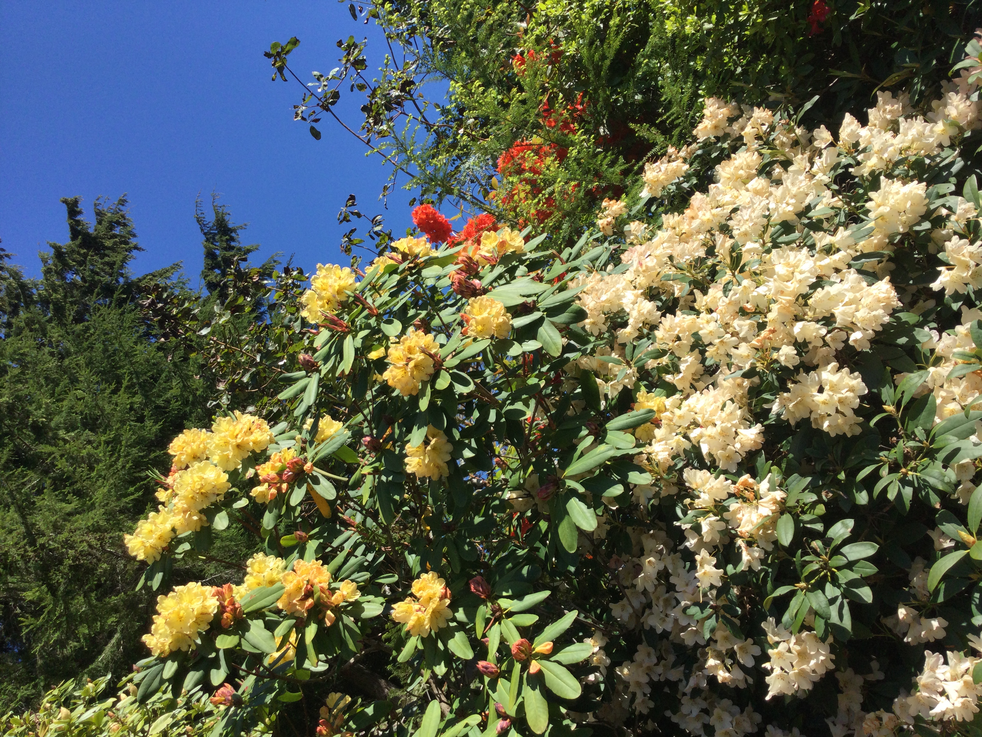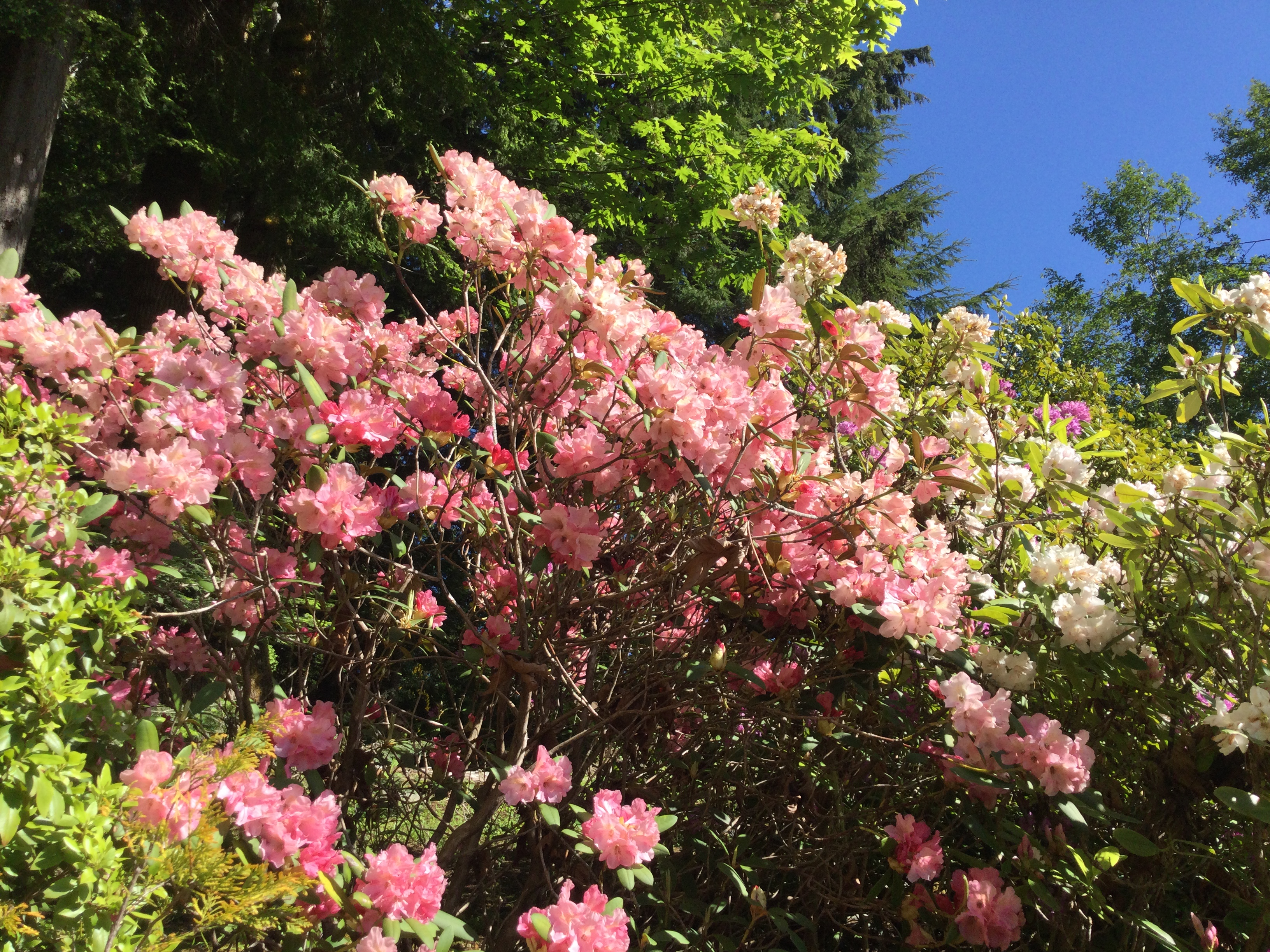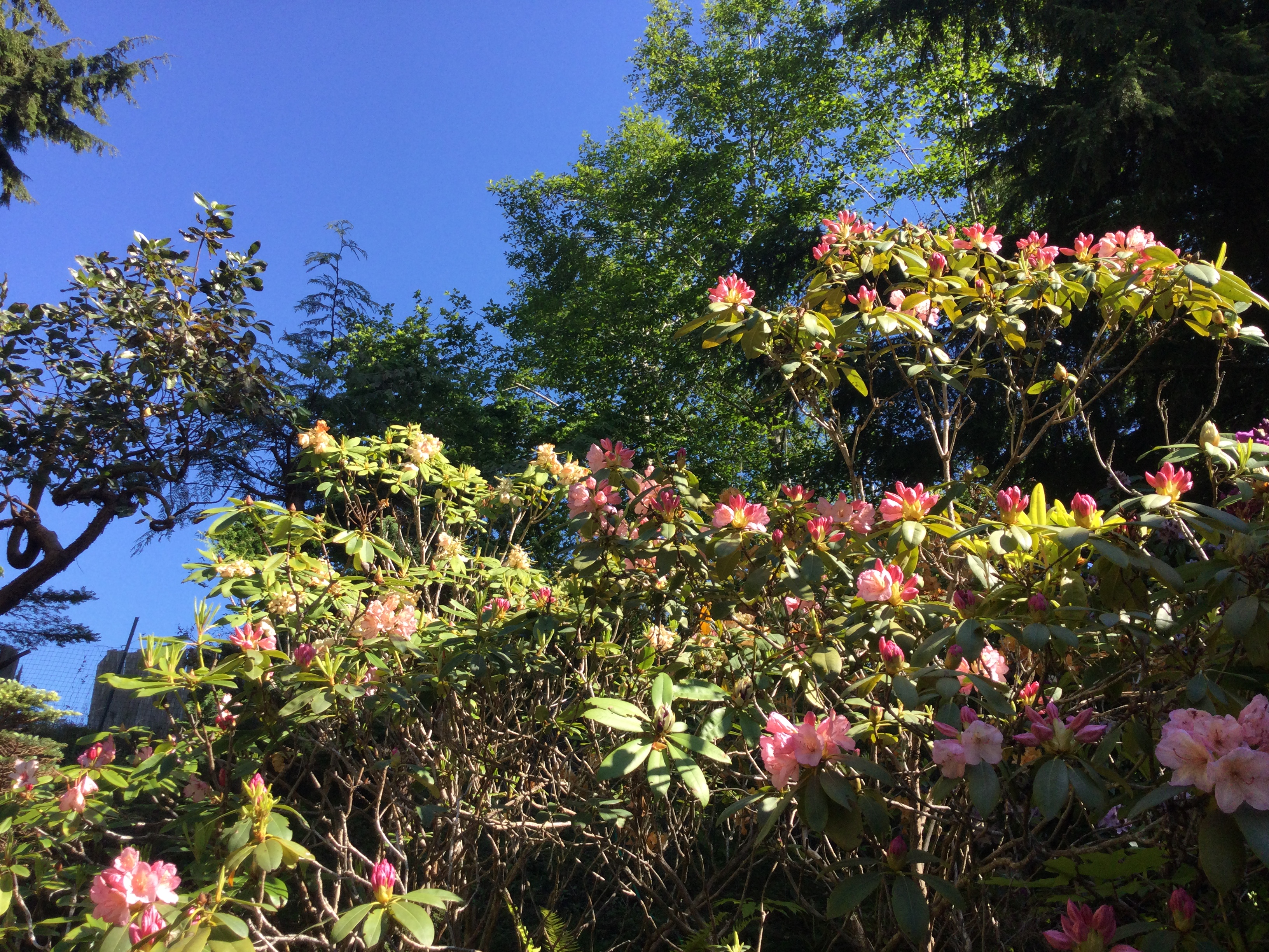 道場五月處處色彩繽紛的花卉,夏天遍地白色洋甘菊夾雜些紫色夏枯草,十月楓紅落滿地,冬日偶有瑞雪全覆蓋,四季有不同風貌景色。